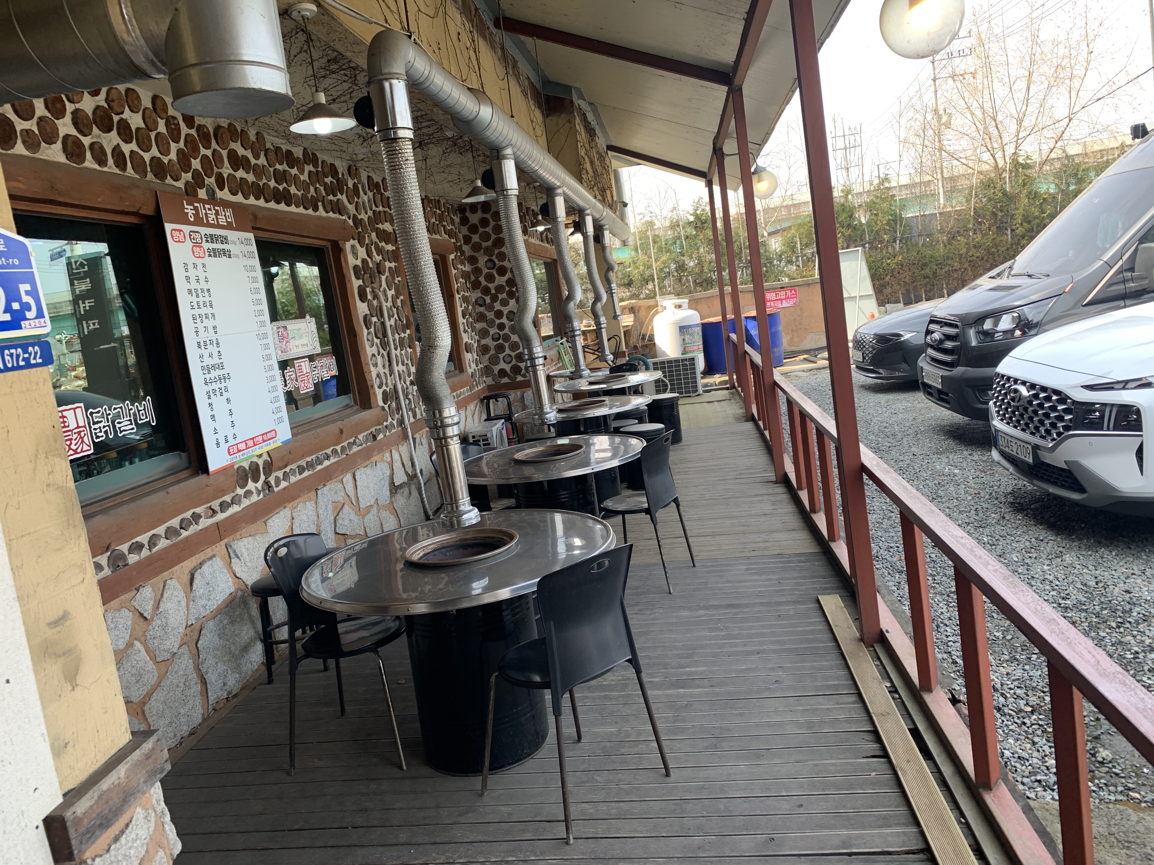 입간판이 크게 떡 하니 자리 잡고 있는 농가 닭갈비다.
