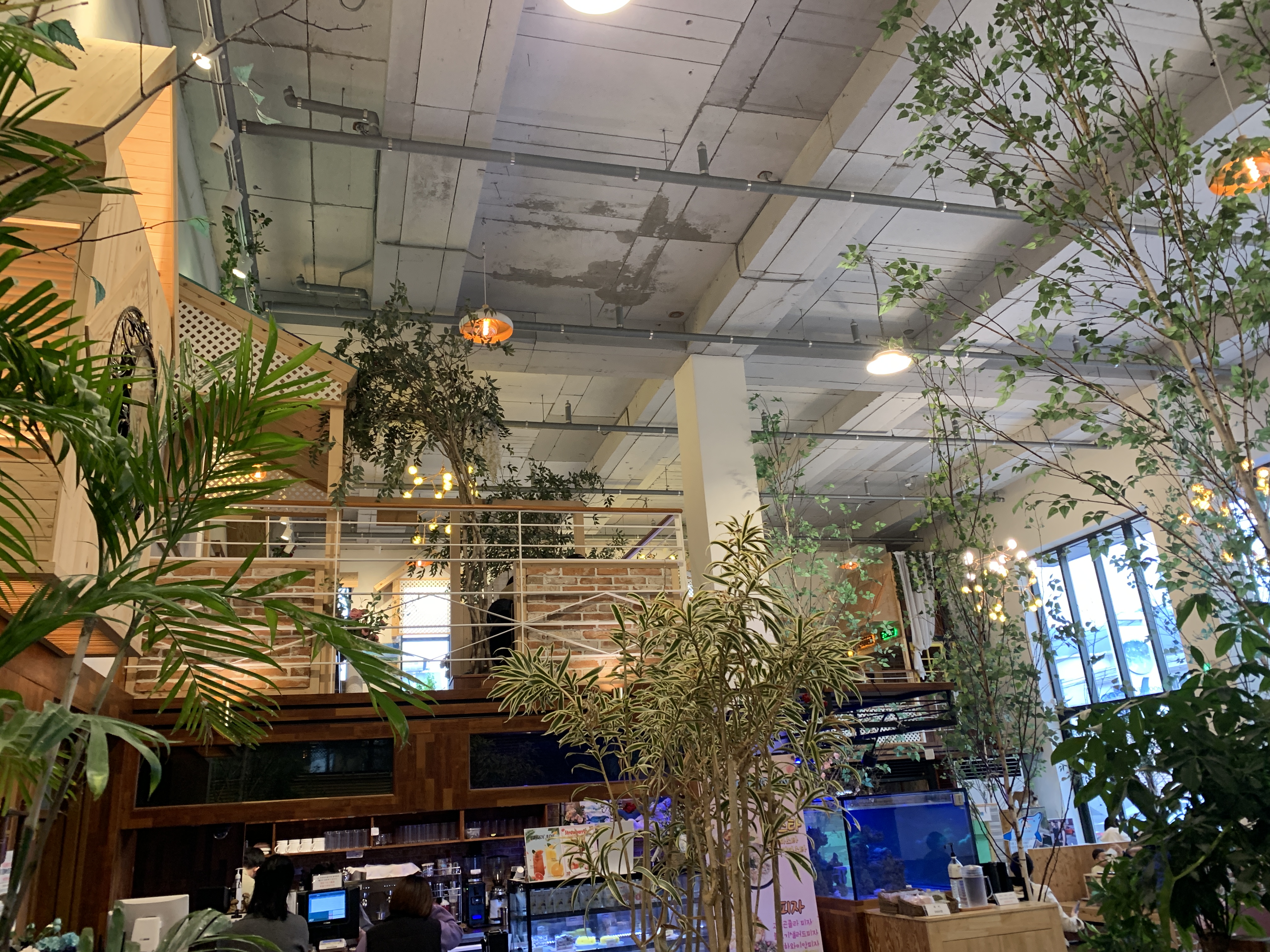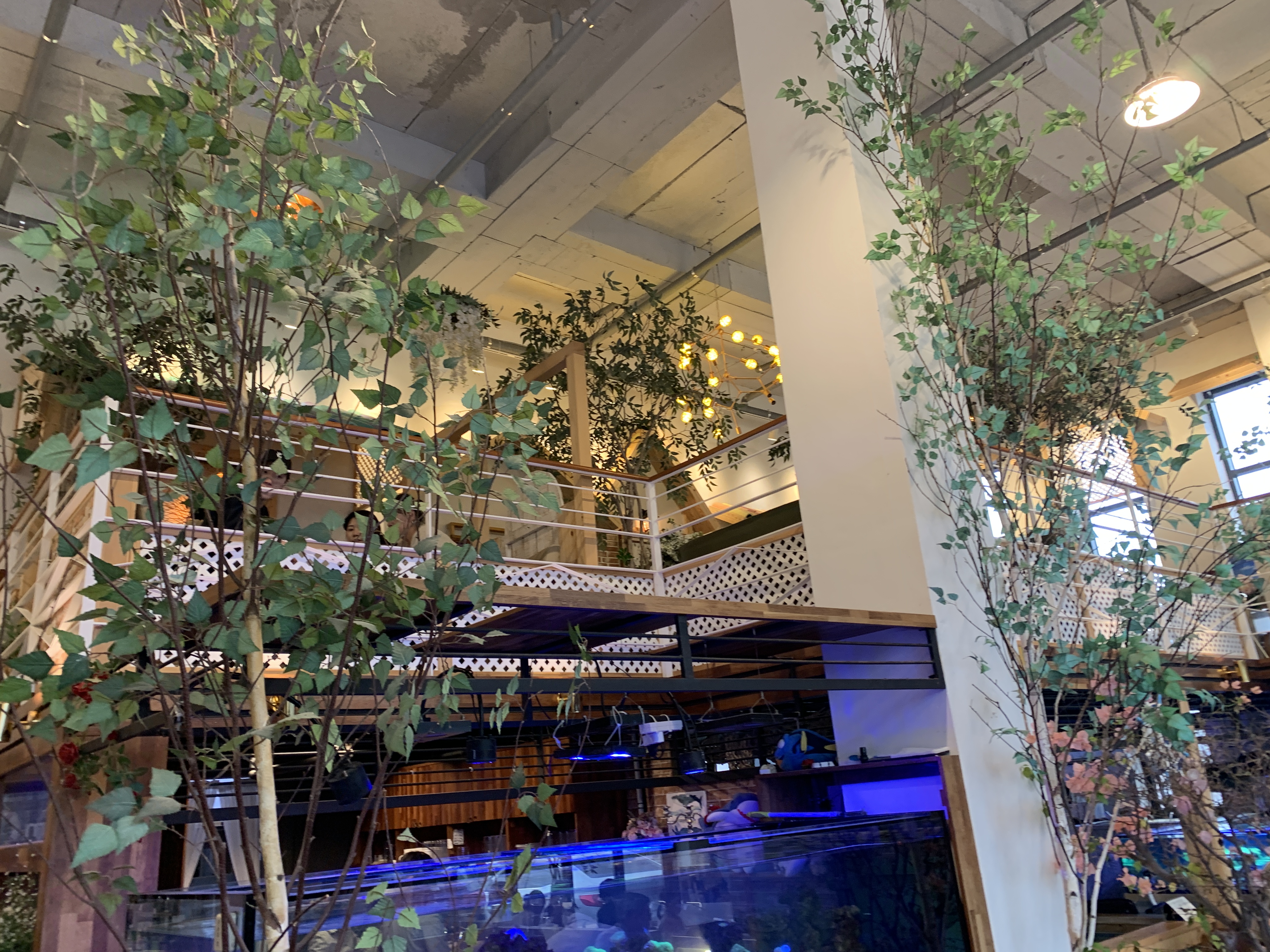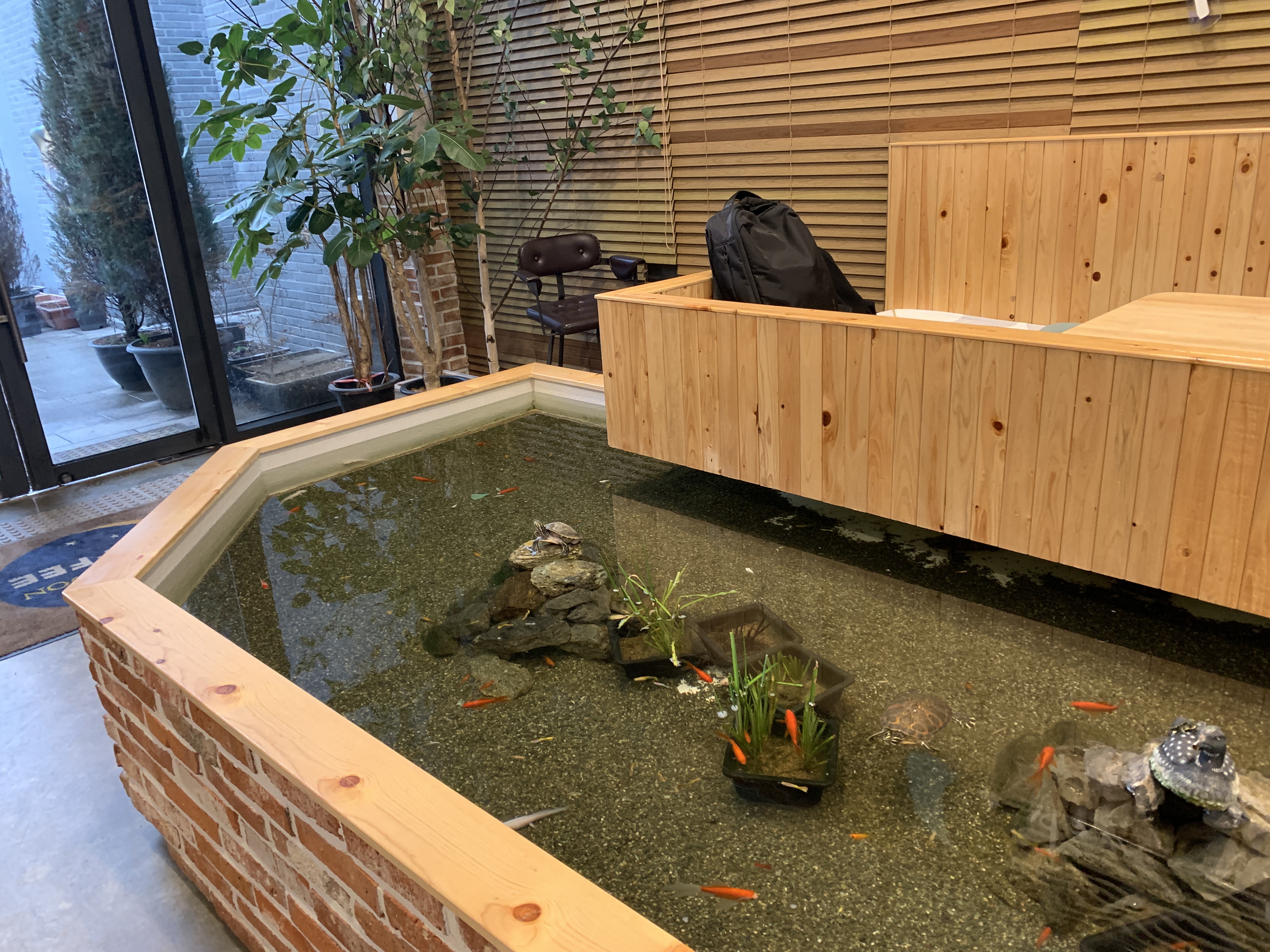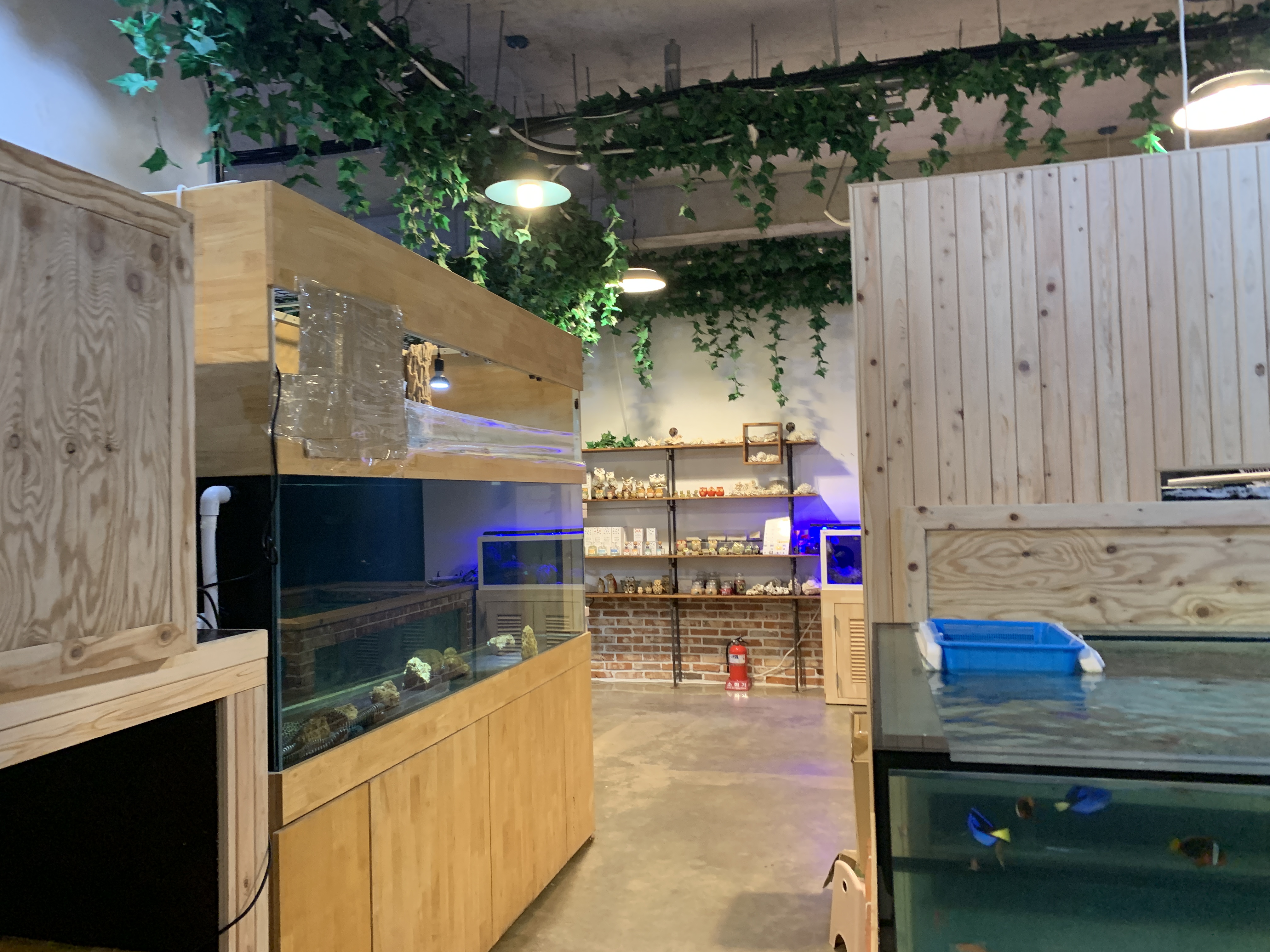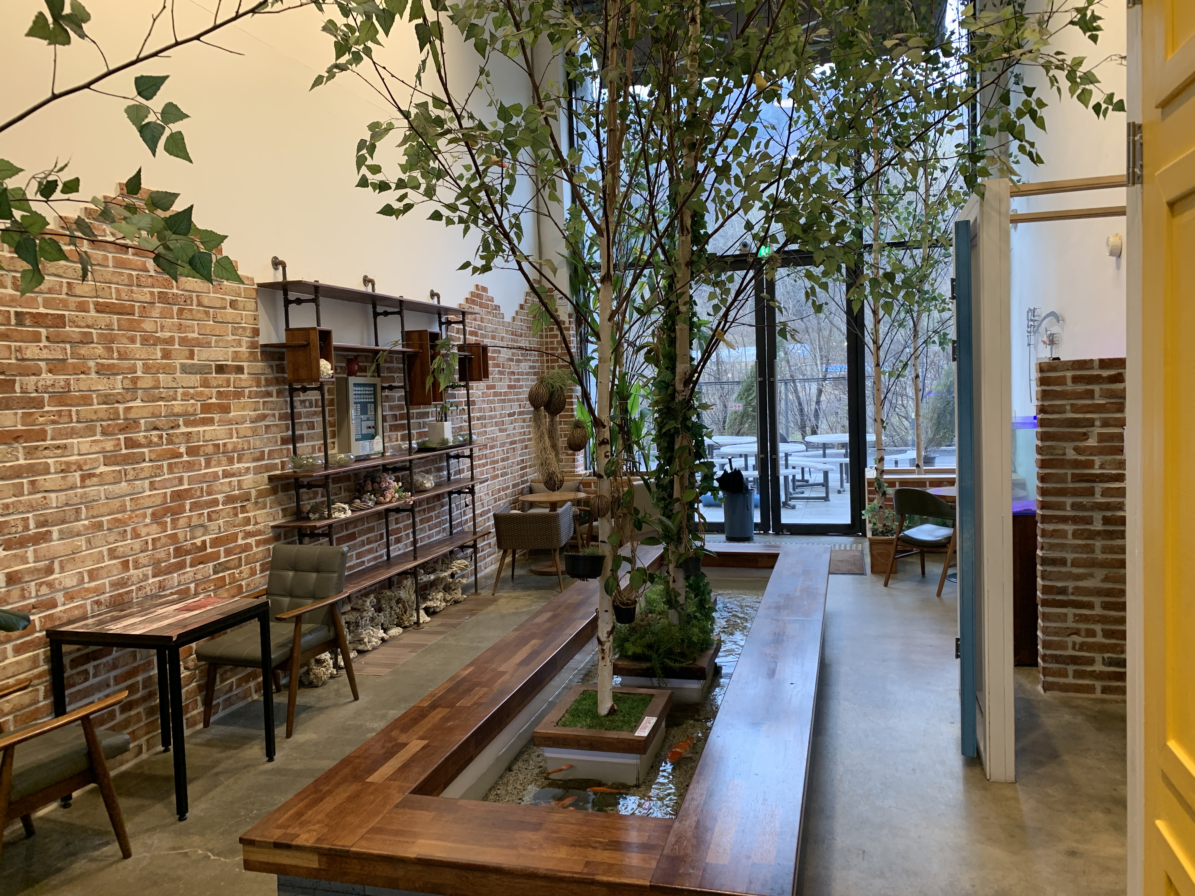 매장 내부에 화단 + 수족관 + 조경으로 구성되어 있고,