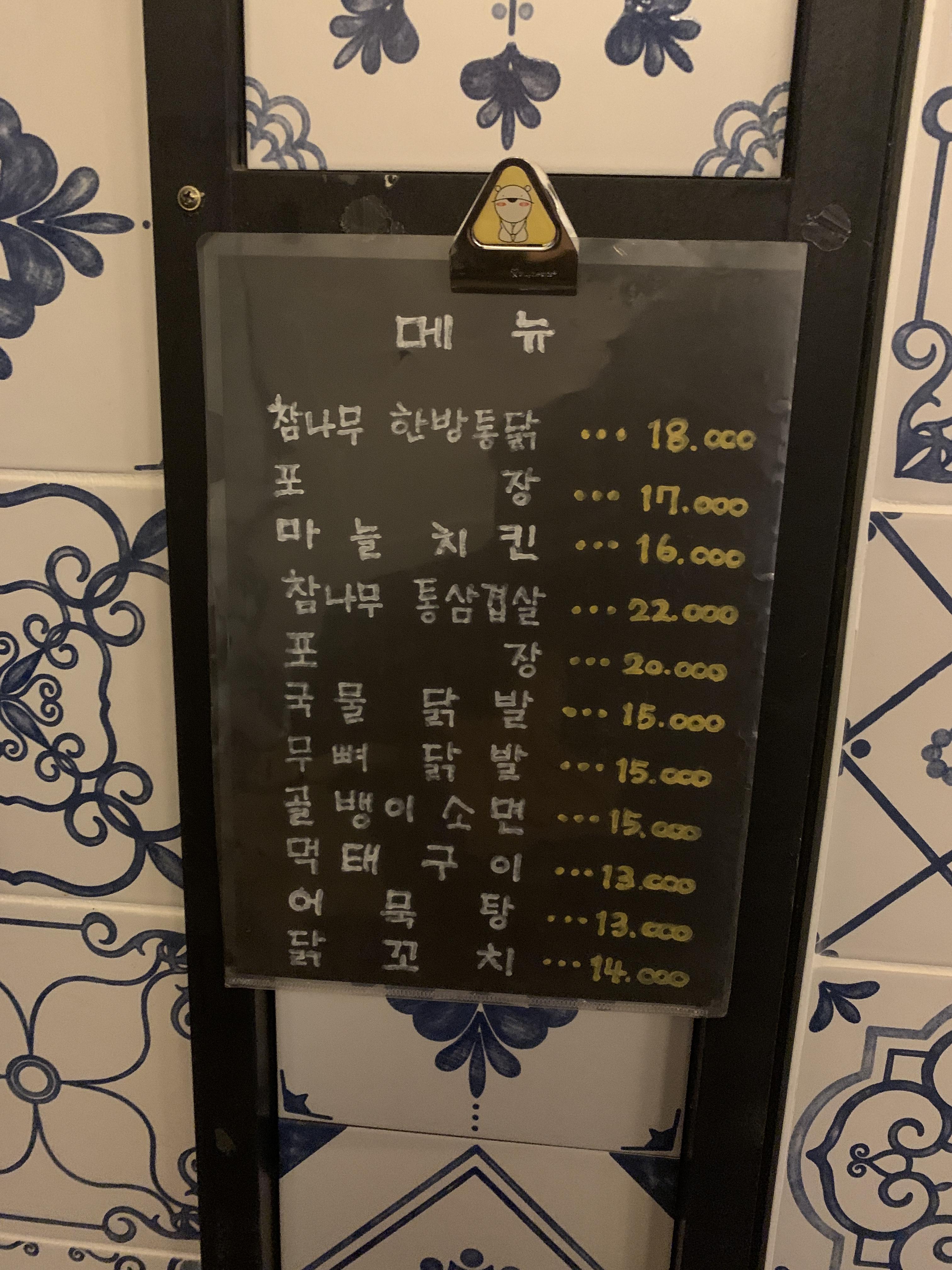 메뉴들은 이것저것 있지만 한방 통닭 말고는 먹어보질 못했다..