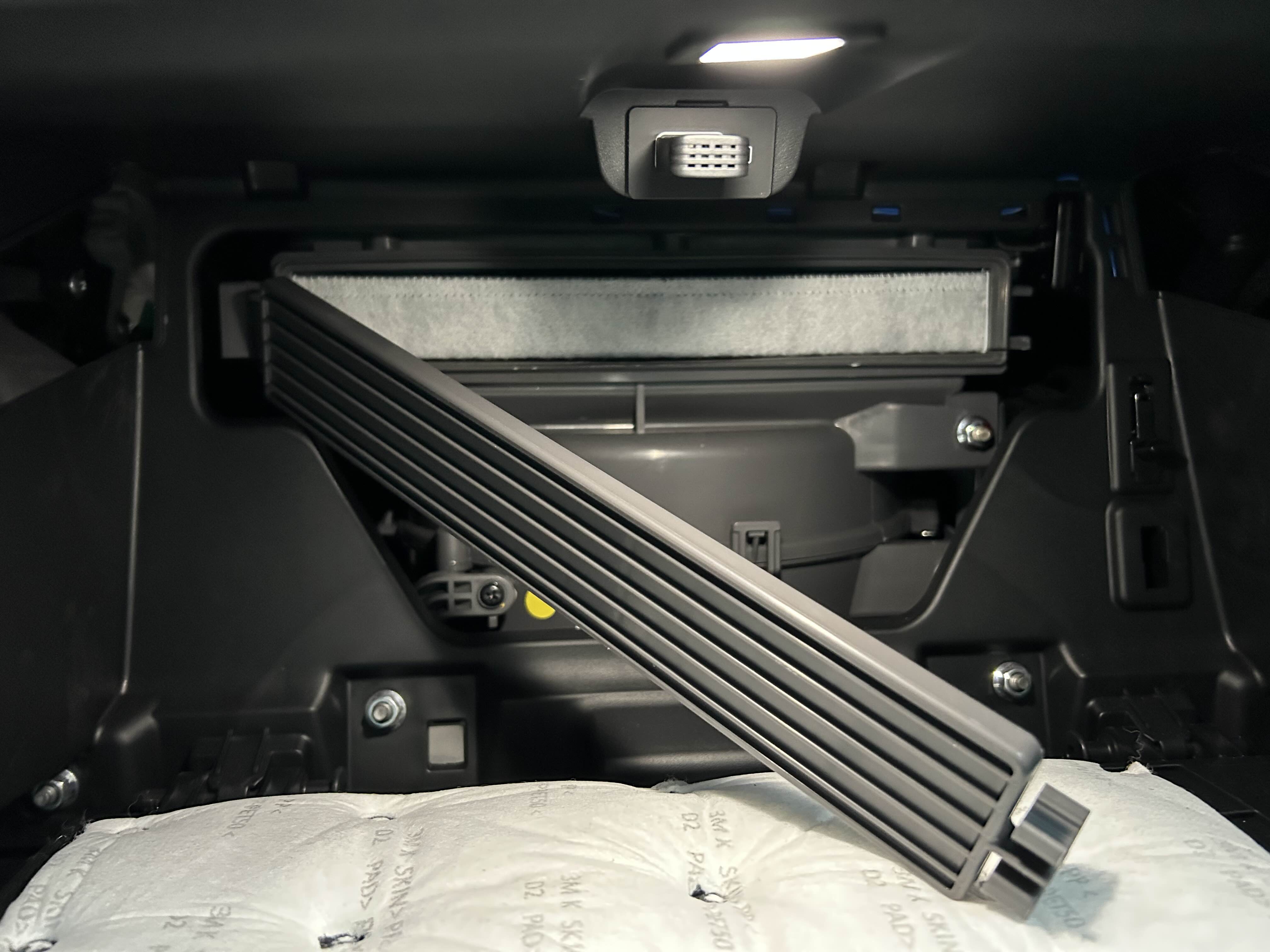 커버를 열어 기존 에어컨 필터를 제거하고 새 걸로 교체하면 끝.