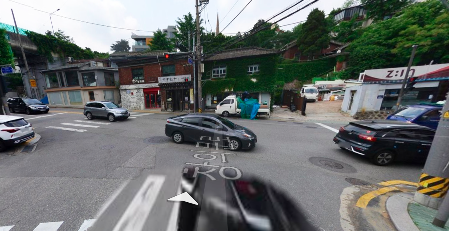 그럼 버스정류장이 있고, 삼거리가 나온다. 바로 거기다.