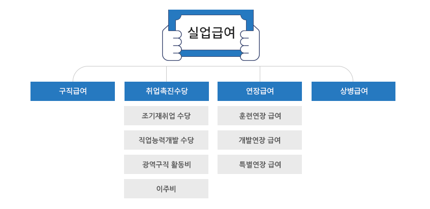 위와 사진과 같이, 구직급여 / 취업촉진수당 / 연장급여 / 상병급여로 크게 4가지 카테고리로 나뉘게 됩니다.