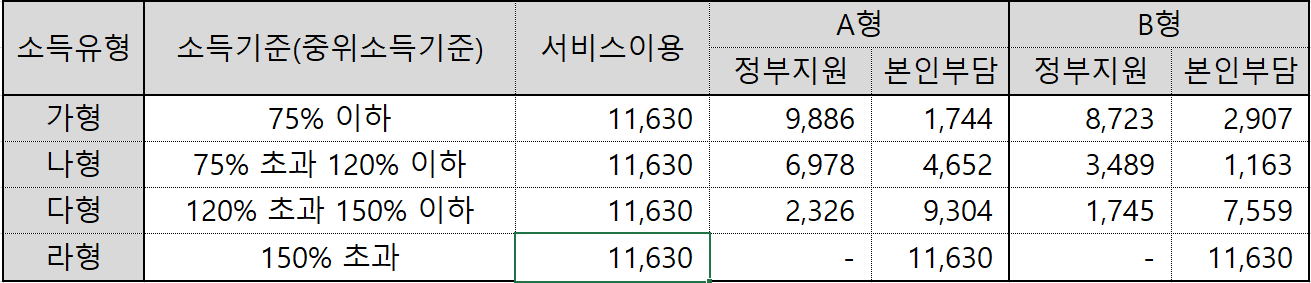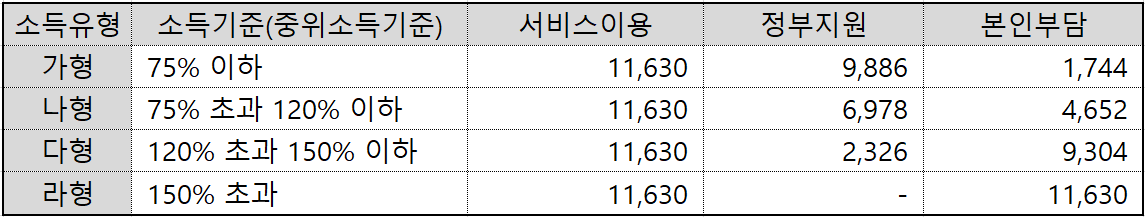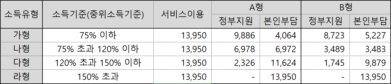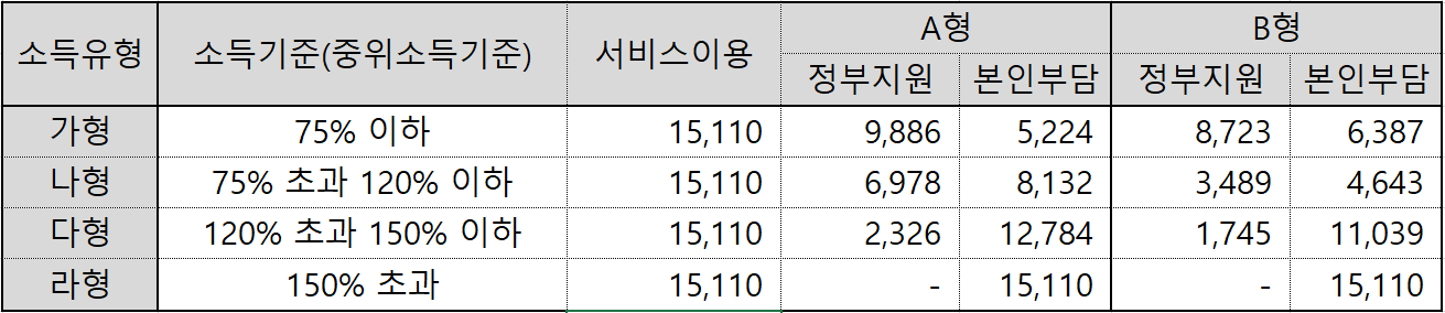 - 라형은 150% 초과시 해당되며, 정부 지원금 없이 100% 자부담