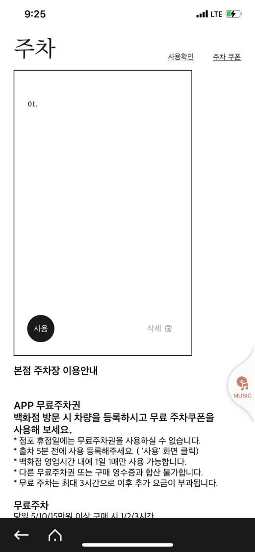 출차 시 저 "사용"을 누르면 처리가 된다.