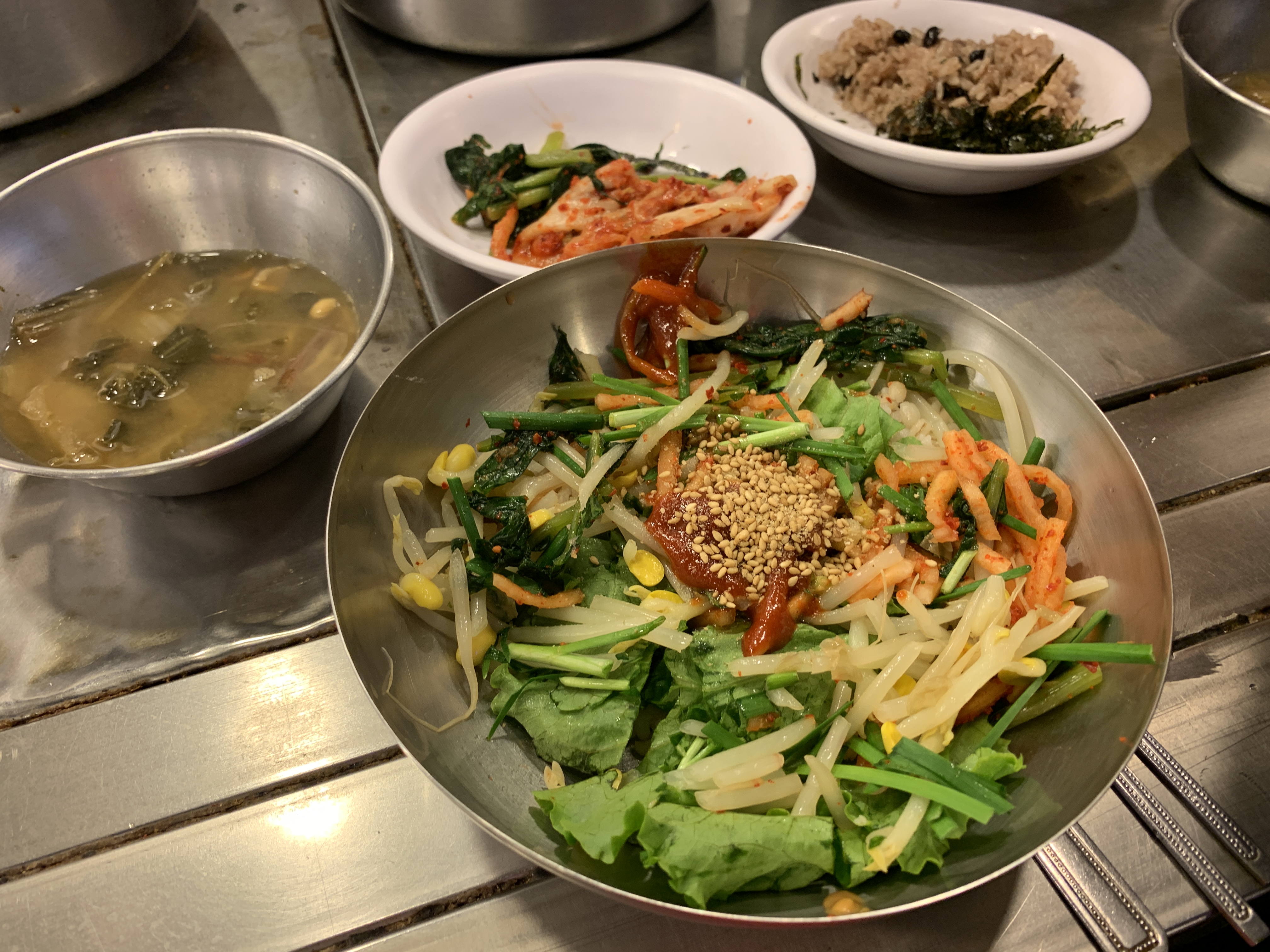 보리밥을 시키면 칼국수, 비빔냉면을 조금씩 맛보게끔 서비스로 주신다.