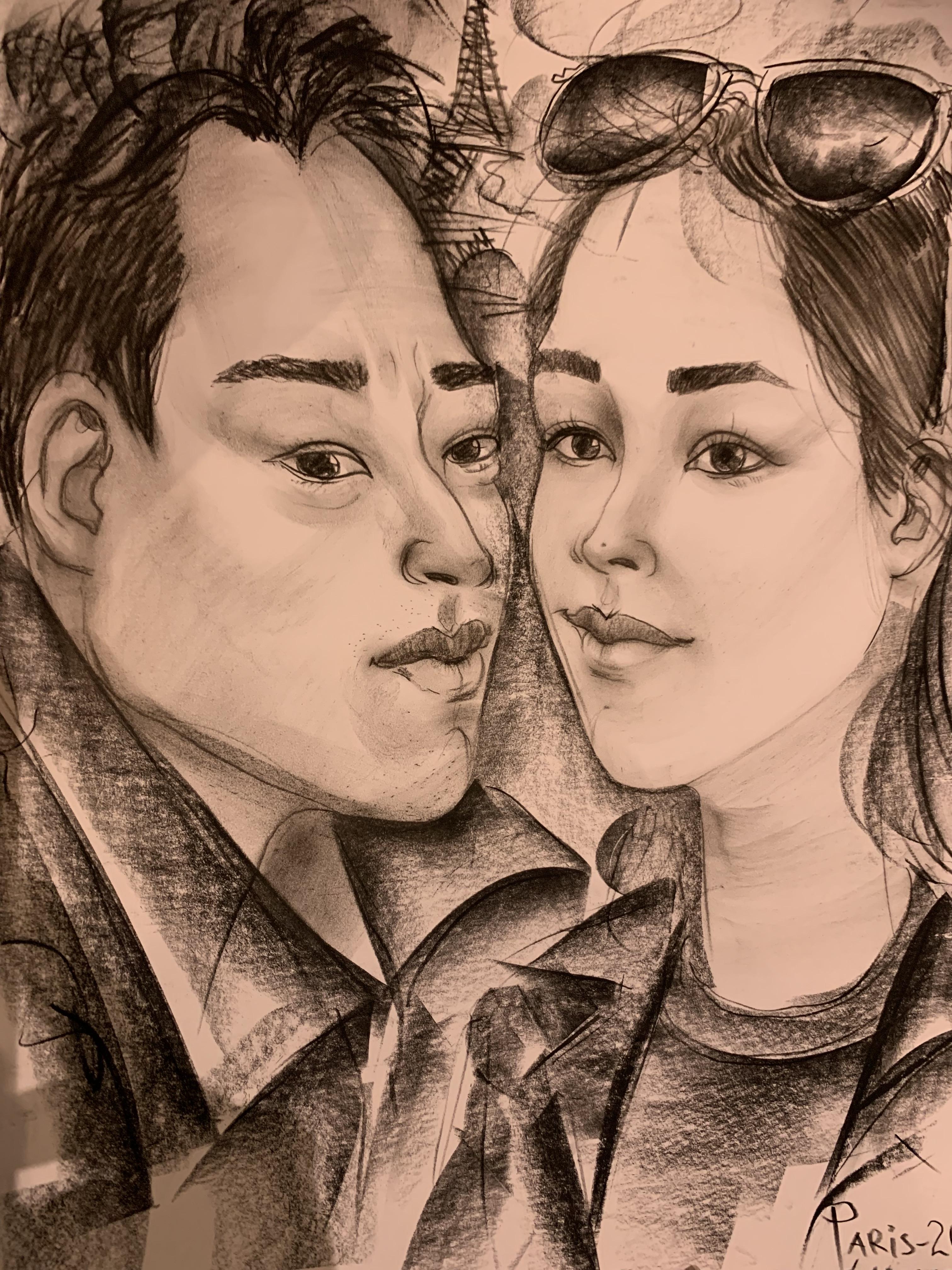 에펠탑에서 그림(?)도 그려 달라 하고,