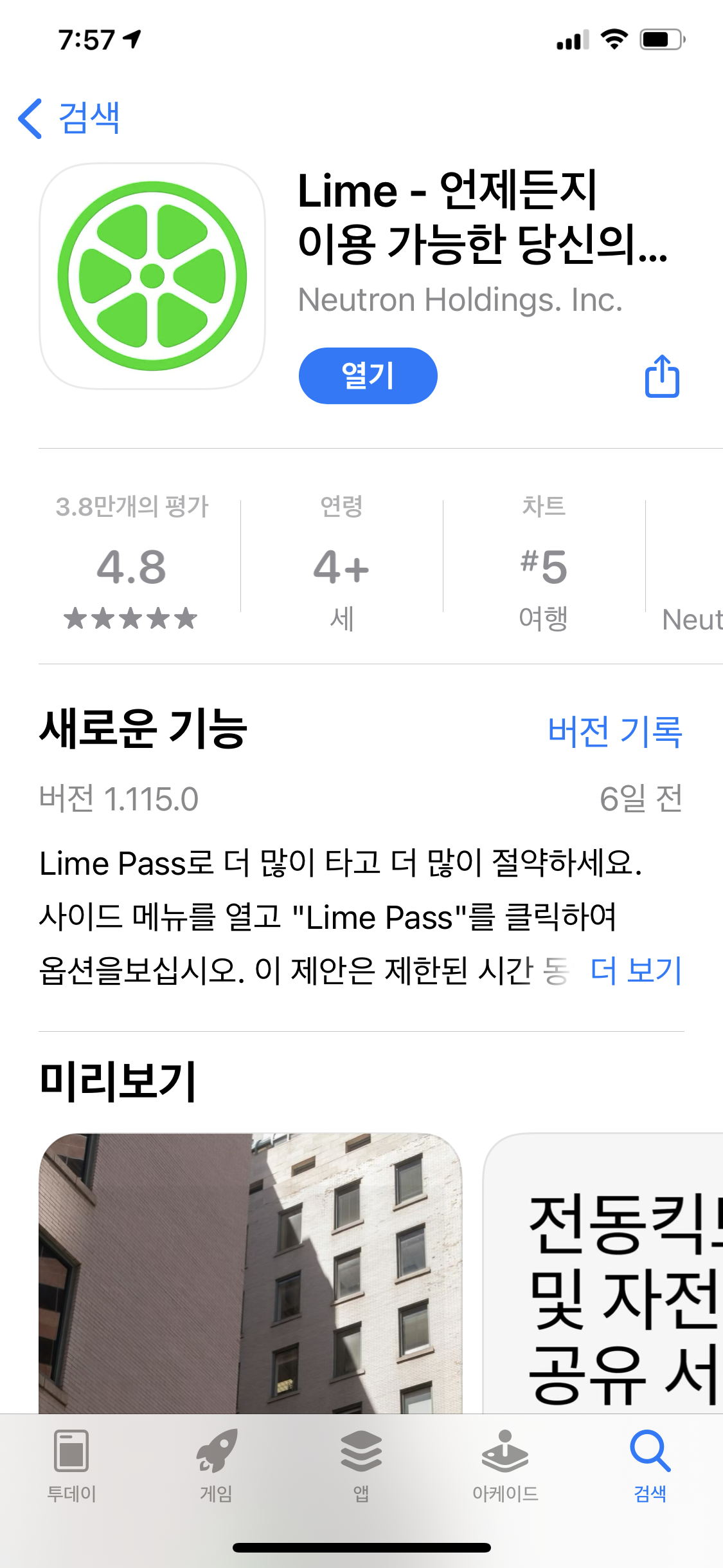 전동 킥보드 "LIME"을 이용하고 싶었다.
