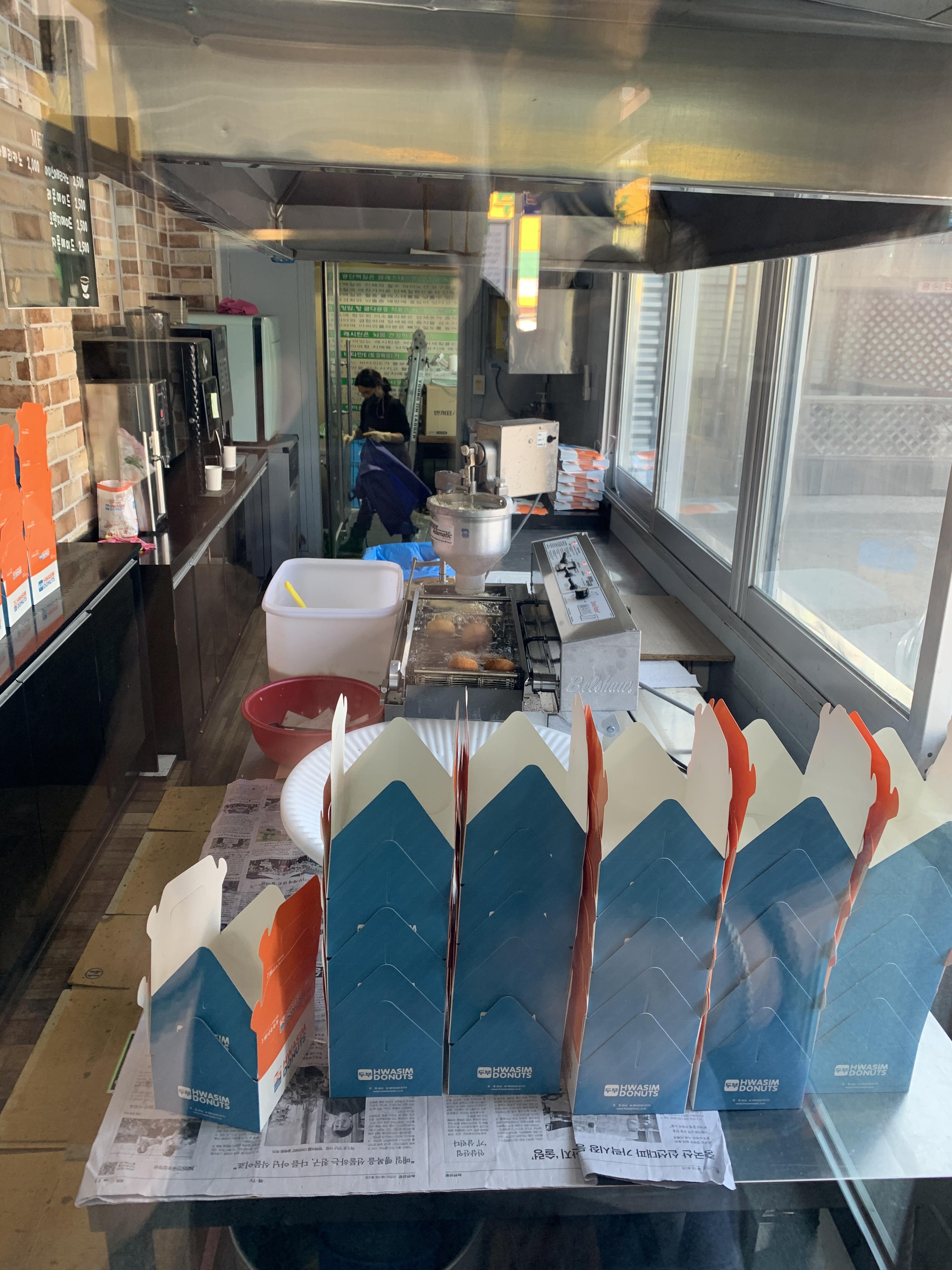 출입구 들어가면 두부 도넛을 열심히 튀기시는 이모님이 한분 계시는데