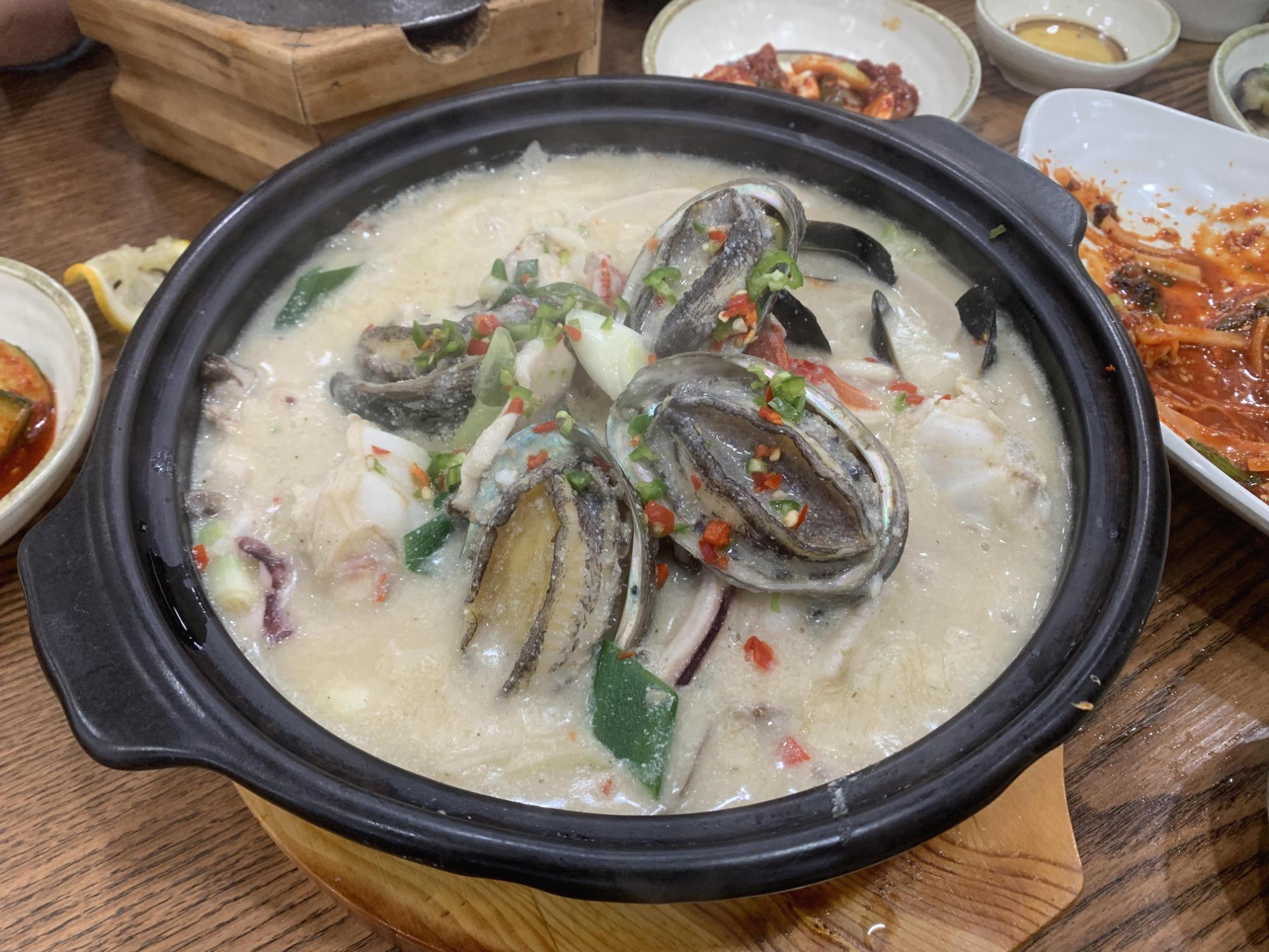 특히 저 전복젓갈은 짜지도 않고 정말 고소하다.