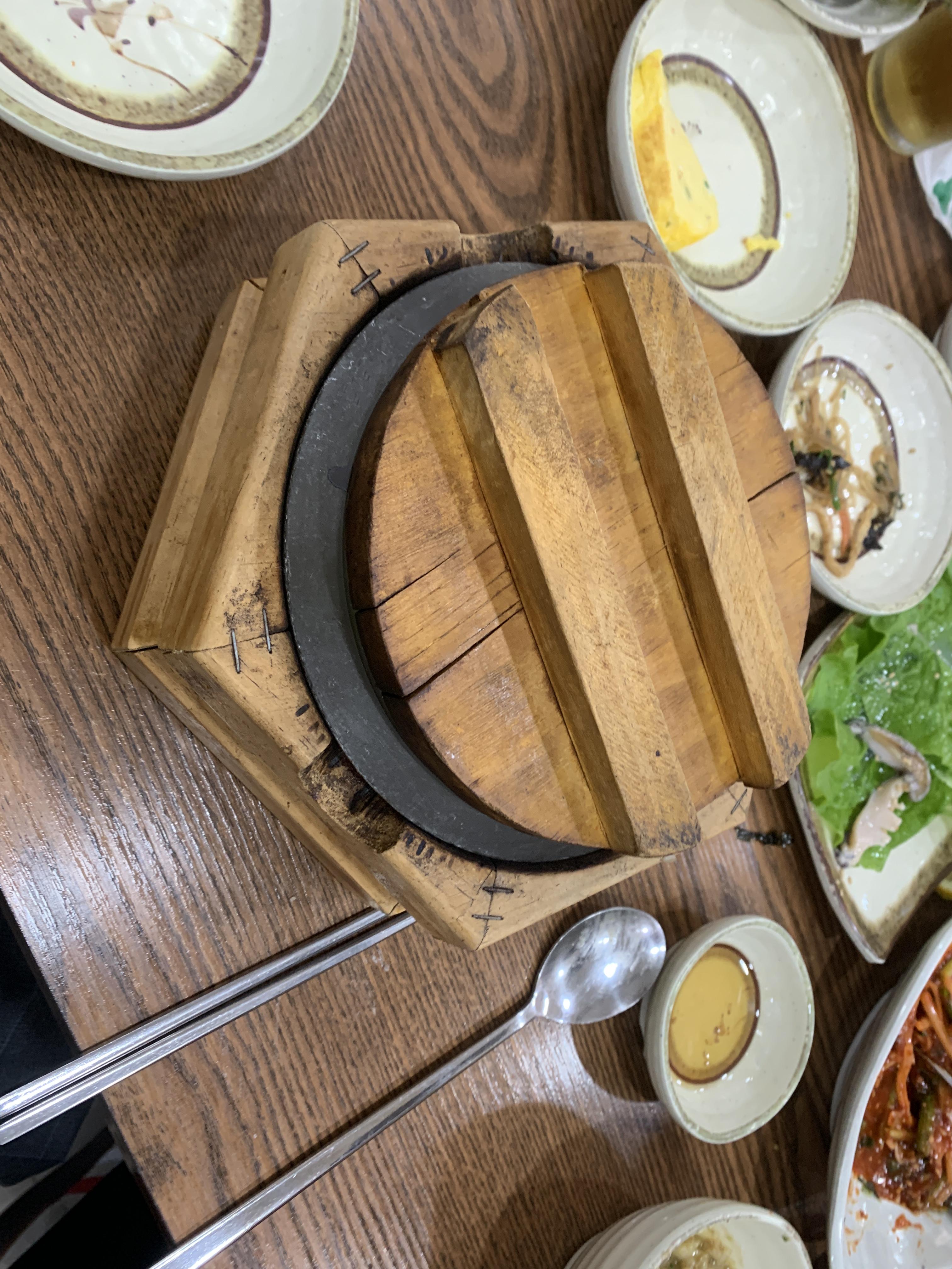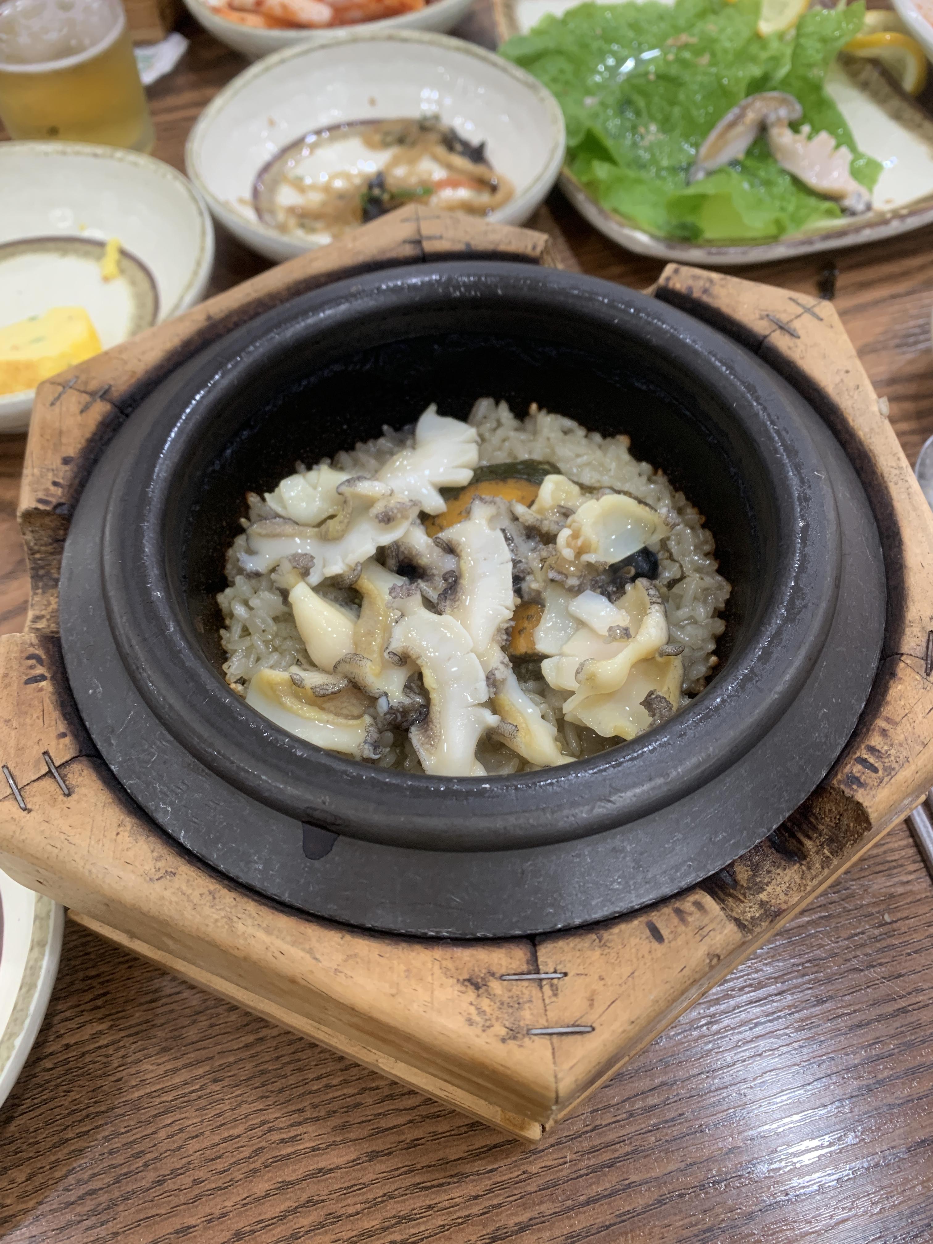 돌솥에서 밥만 들어내고 그 밥은 전복 젓갈장에 살짝 비벼