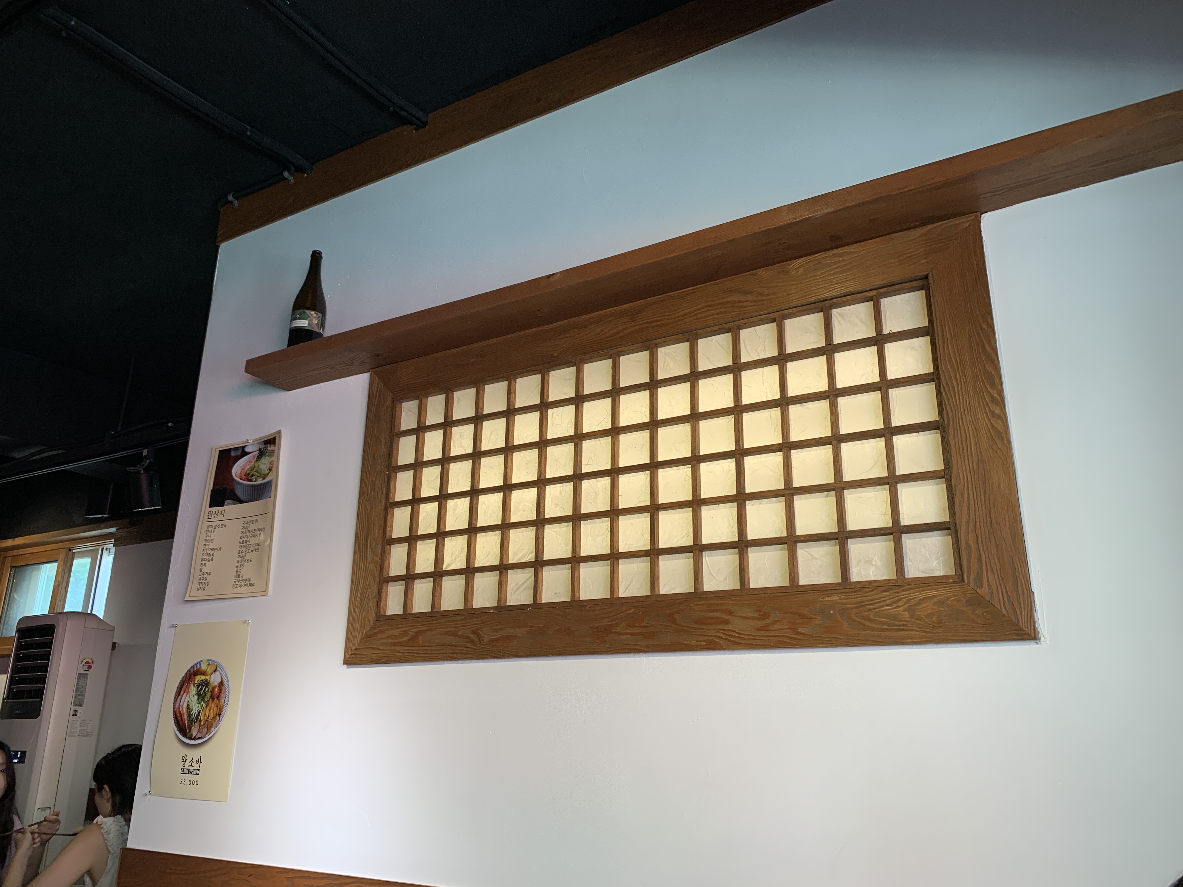 우드+ 베이지 계열 도장 + 간간이 보이는 살대나 창문 연출
