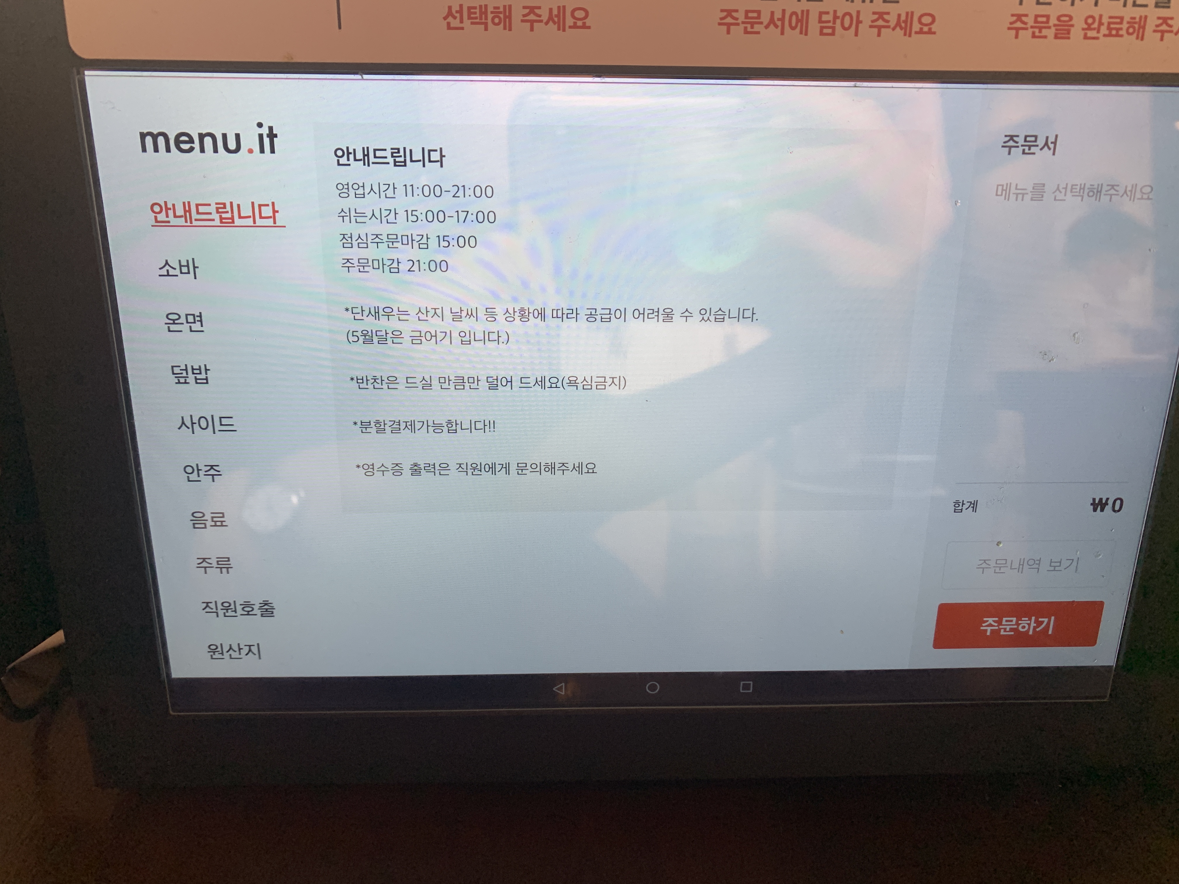앉아서 메뉴 선택하고 바로 결제까지.