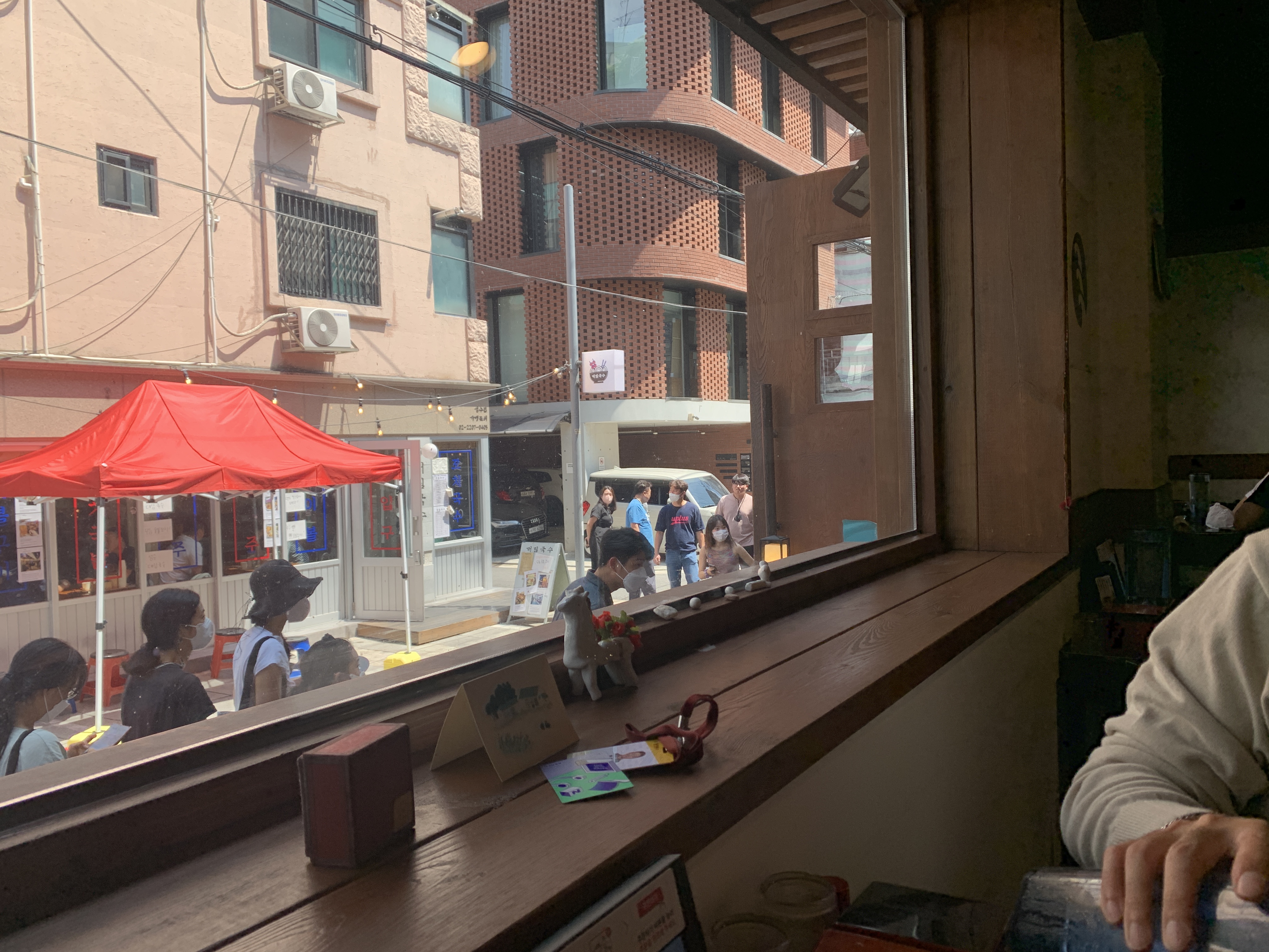 날도 뜨거운데, 들어가서 주문 먼저 하고 있는다 해도 안 들여보내준단다. 써글