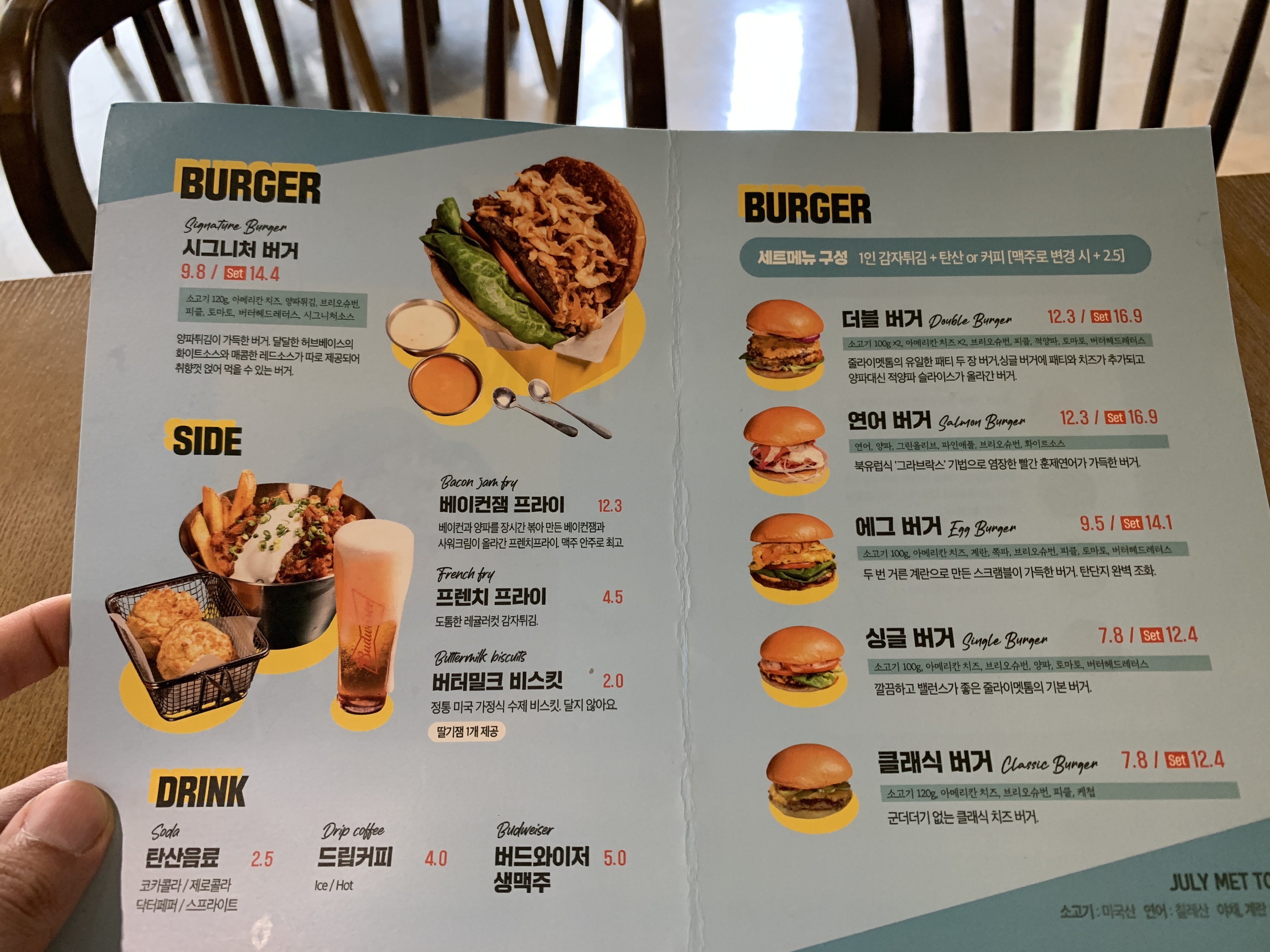 시그니처 버거를 선택한다. 물론 셋트!