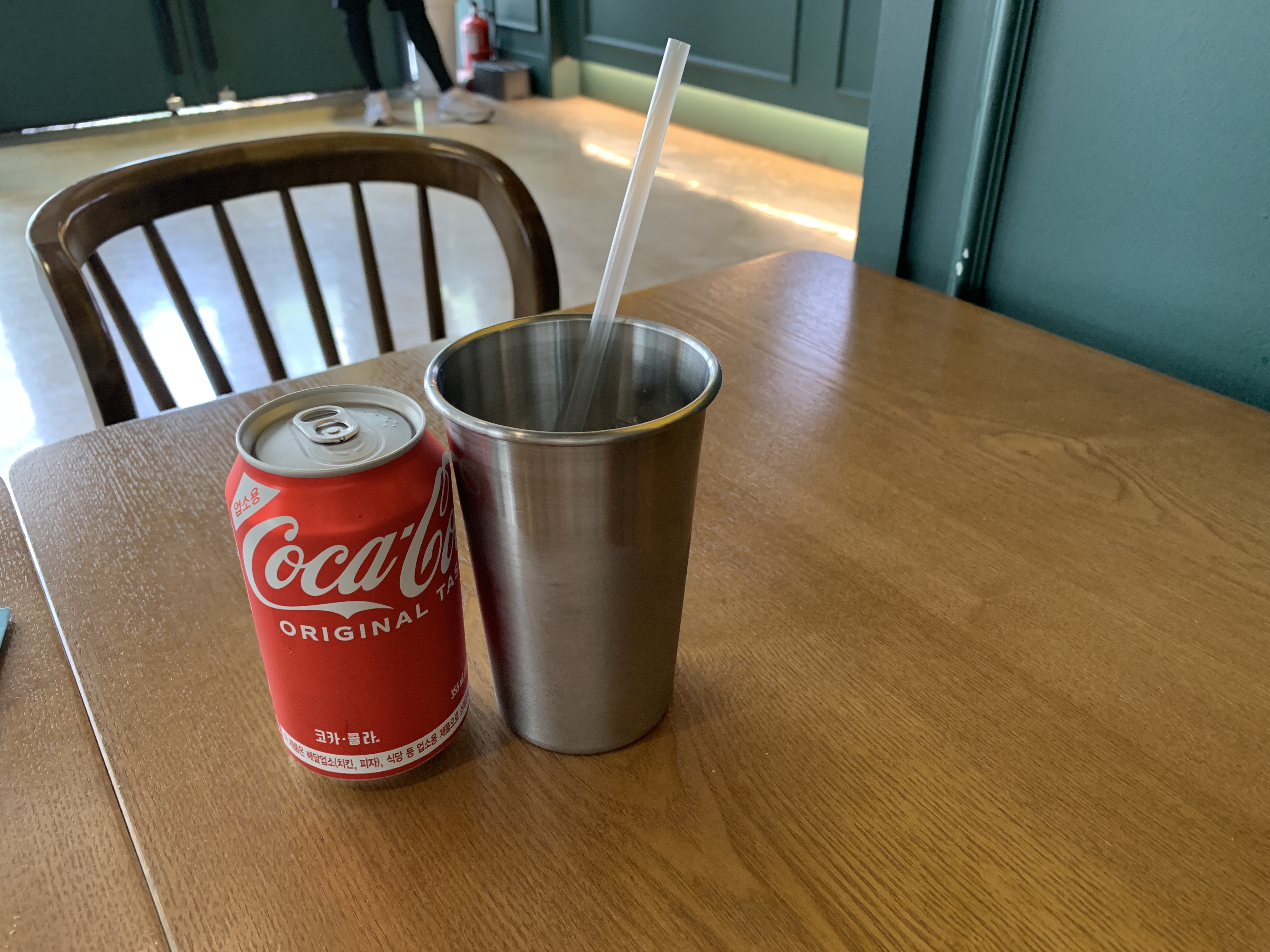나가자마자 바로 소독약을 가져와 테이블 및 의자를 아주 깨끗하게 청소를 하신다.