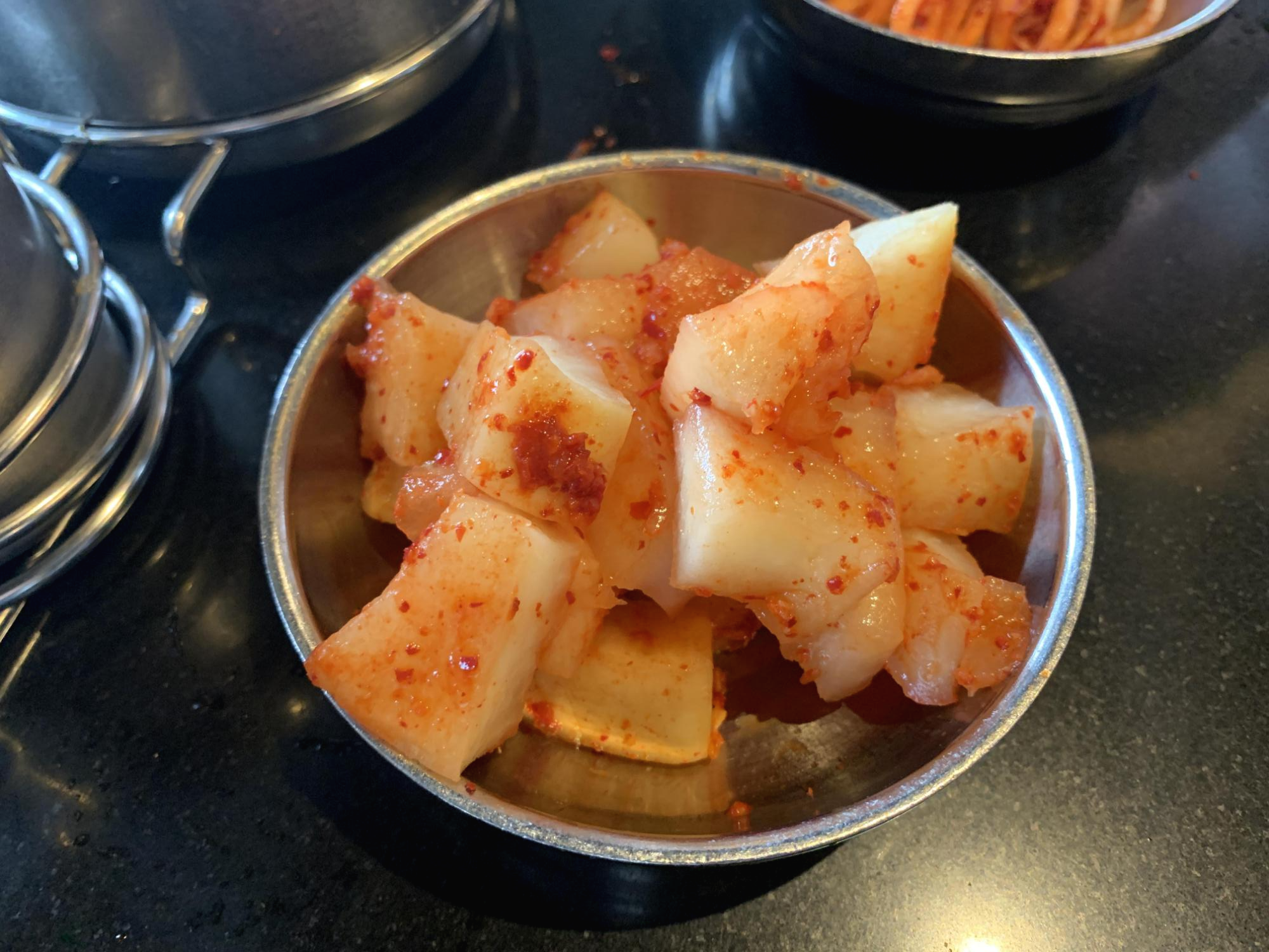 이렇게 먹을 만큼 깍두기를 잘라서 덜어 놓고 나면 곧