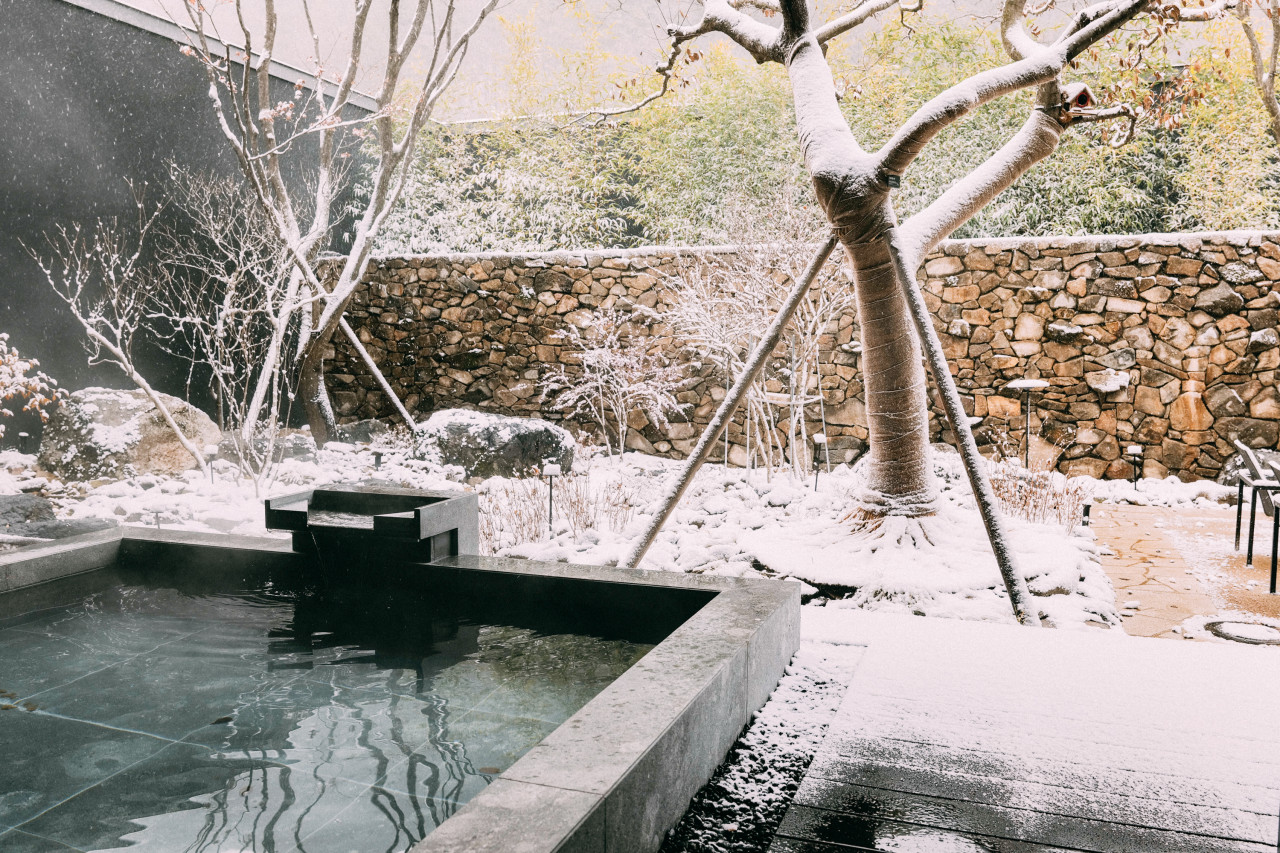 겨울철 시원한 공기와 따뜻한 온천수를 동시에 즐길 수 있어