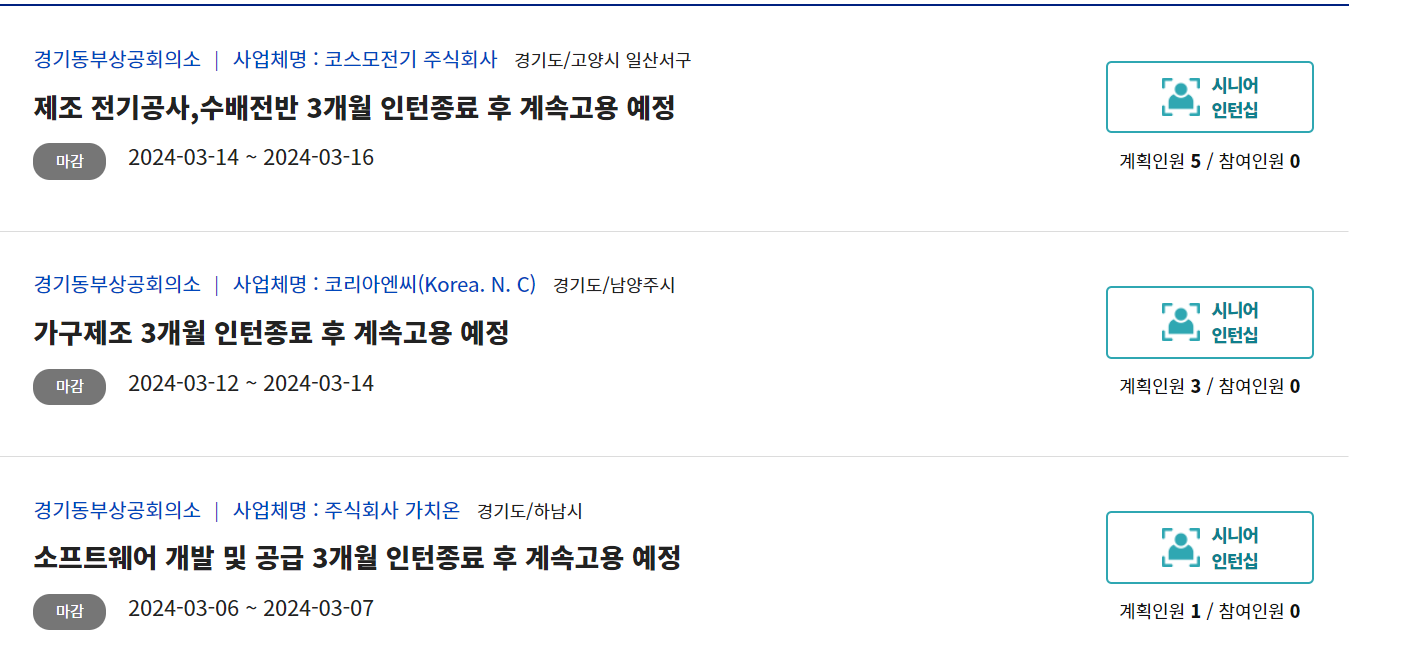 검색된 지역에서 노인일자리 사업을 진행중인 여러 회사들이 검색됩니다.