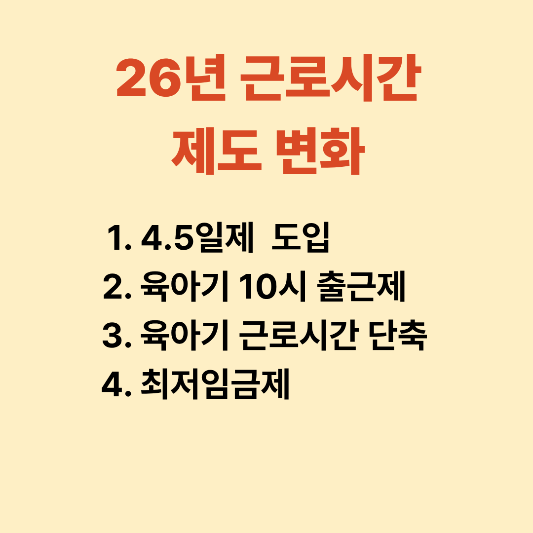26년에 변화될 근로시간 변화를 간략하게 정리했습니다.