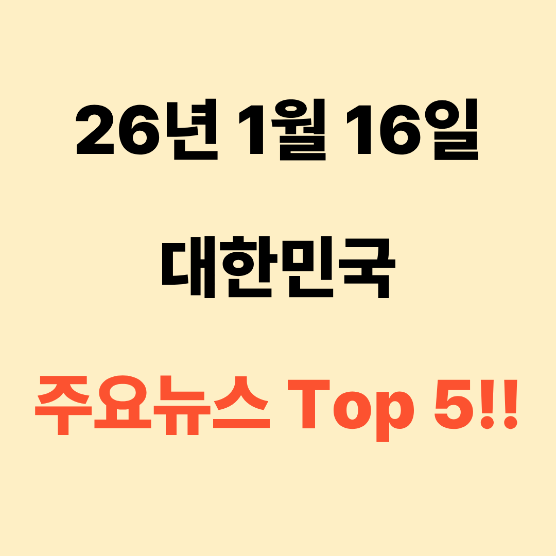 26년 1월 16일 우리나라 대한민국에서 발생한 주요뉴스 Top 5 를 정리해 드립니다~!
