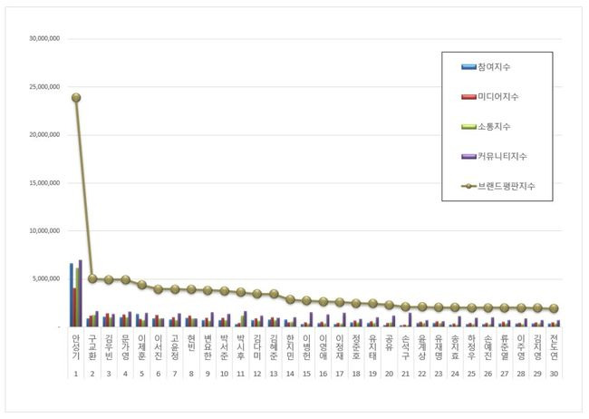 - 브랜드 평판은 온라인 빅데이터를 기반으로 배우들의 영향력·인지도 등을 측정한 결과다.