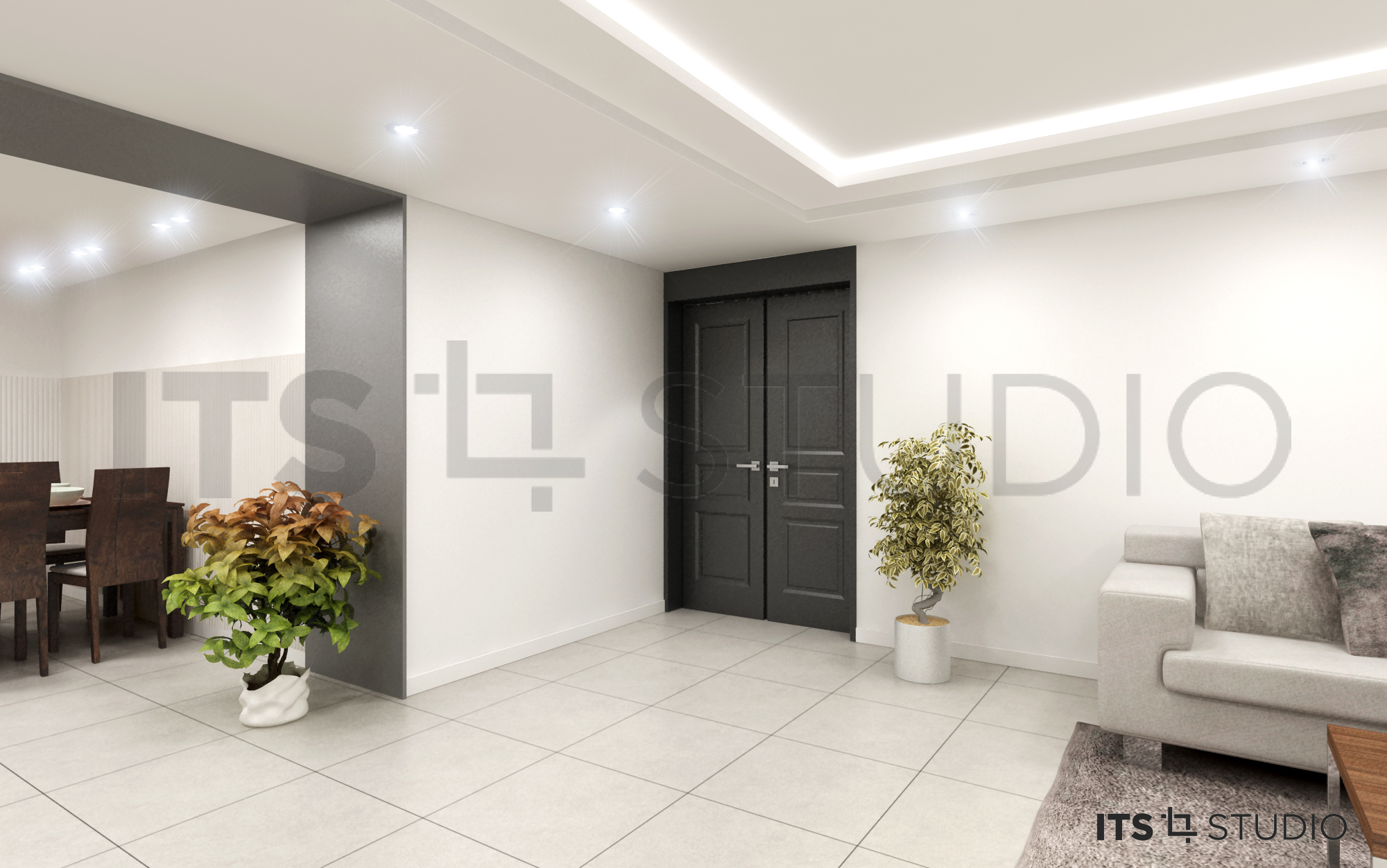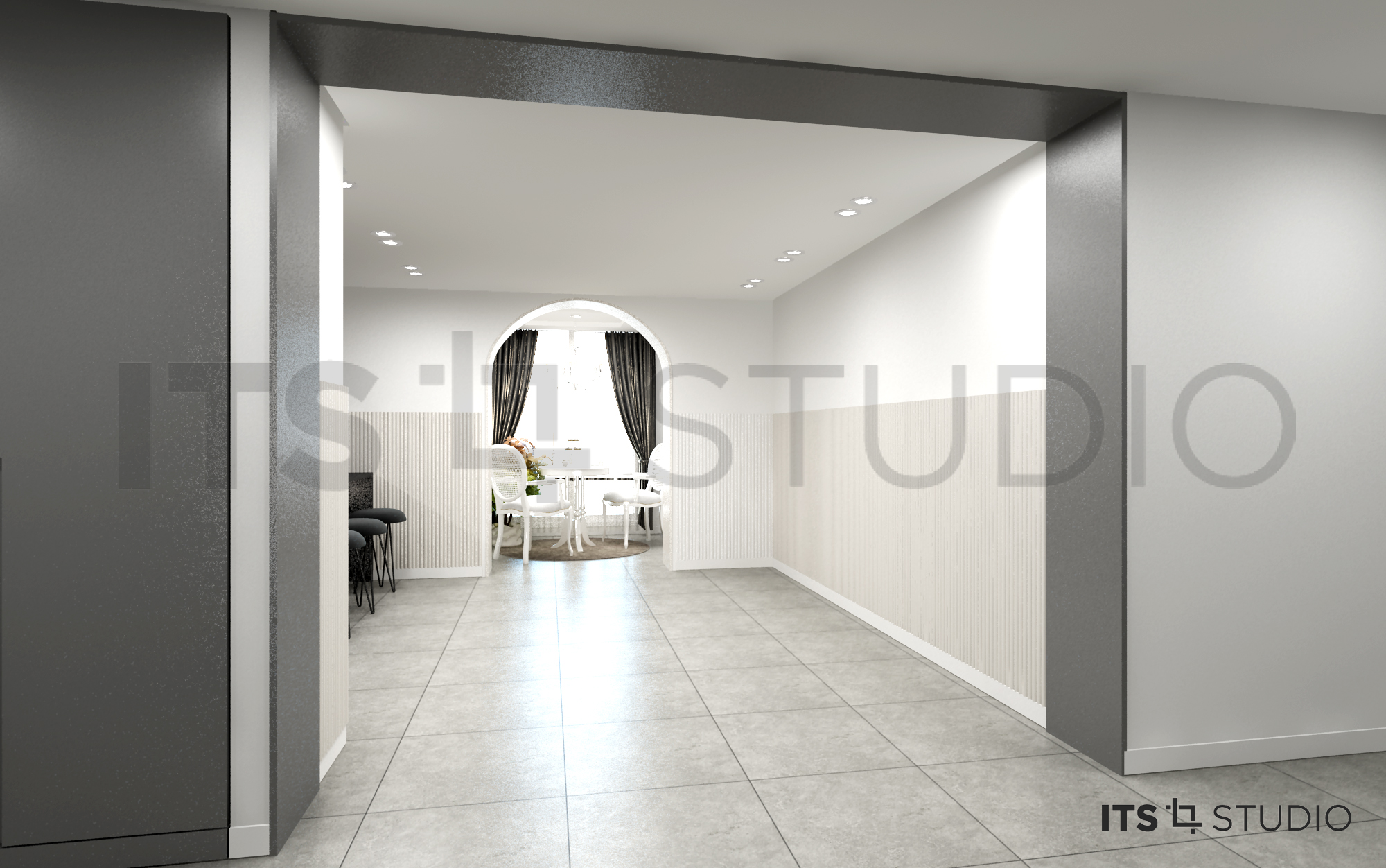거실에서 안방으로 이어지는 복도에 문을 설치하여 포인트를 주길 원했다.